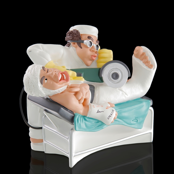 С детства побаиваетесь врачей и не можете заставить себя пойти в больницу, даже когда это действительно необходимо? Поставьте у себя дома замечательную статуэтку, и через какое-то время вы попросту забудете обо всех своих страхах, ведь когда мы смеемся над тем, чего боимся, это перестает нас пугать. Оригинальная статуэтка "Травматолог и пациент" марки Antartidee порадует не только людей в белых халатах, но и всех, кто обладает прекрасным чувством юмора и знает толк в стильных вещицах.