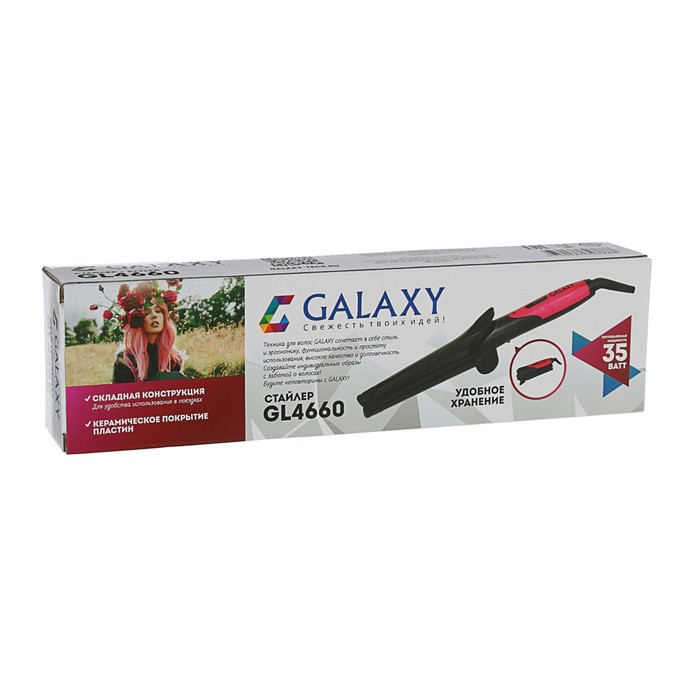 Стайлер Galaxy GL 4660, 35 Вт, керамическое покрытие, черно-розовый