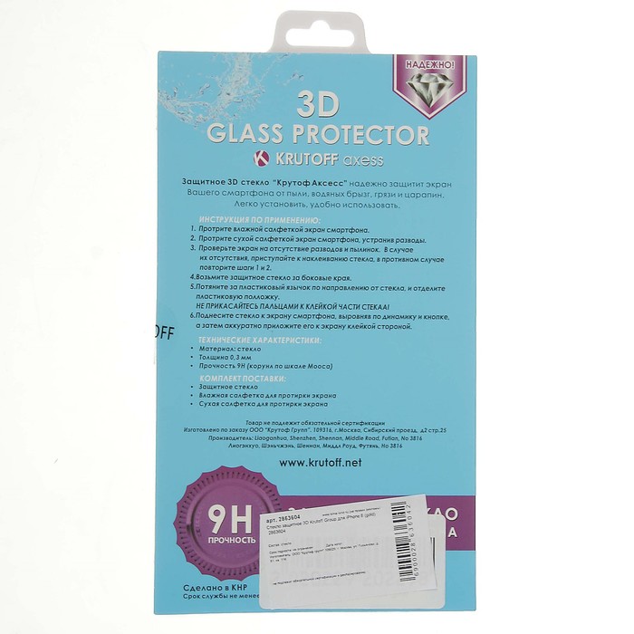 Стекло защитное 3D Krutoff Group для iPhone 6 (gold)