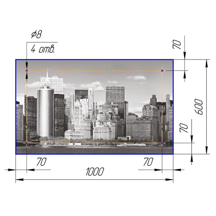 Стеклянный фартук закаленное стекло М1 "Город черно-белый", 600х1000х4
