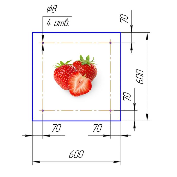 Стеклянный фартук закаленное стекло М1 "Клубника", 600х600х4