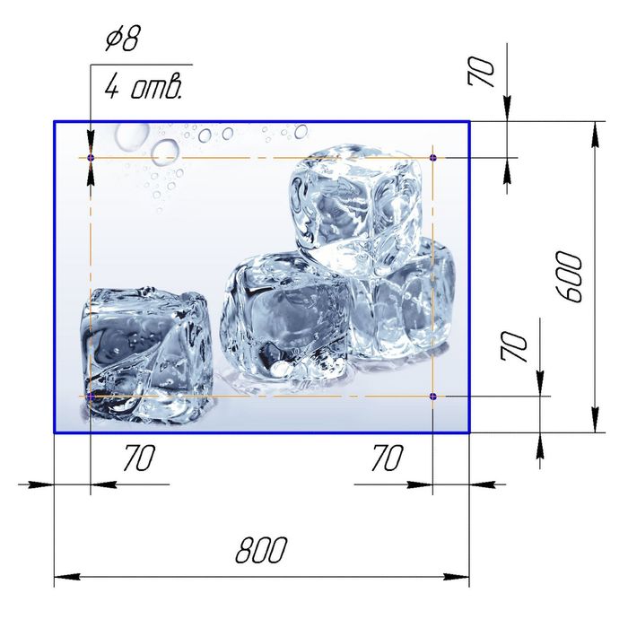 Стеклянный фартук закаленное стекло М1 "Кубики льда", 600х800х4