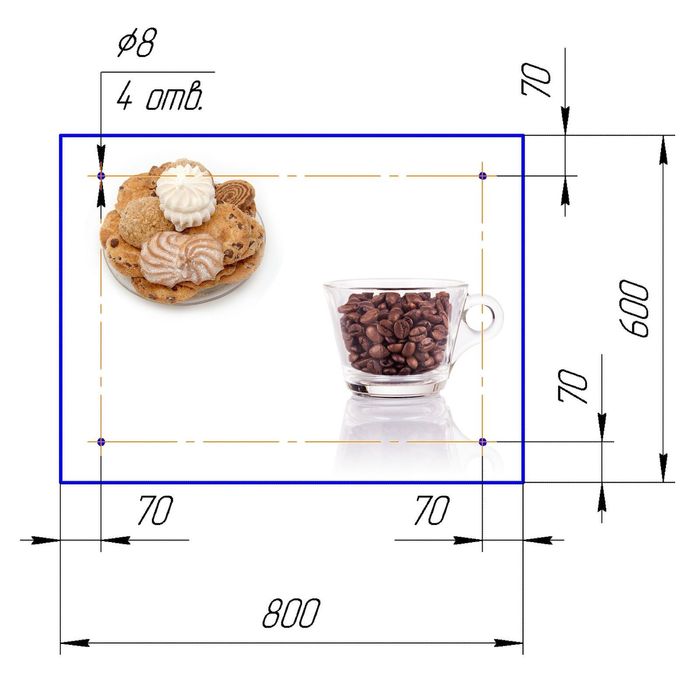 Стеклянный фартук закаленное стекло М1 "Печенье", 600х800х4