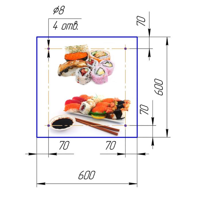Стеклянный фартук закаленное стекло М1 "Роллы", 600х1000х4