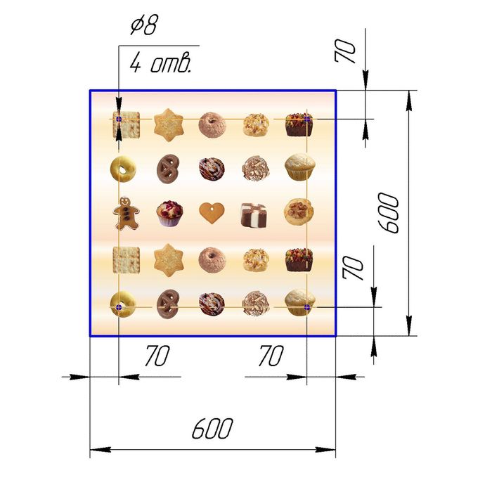 Стеклянный фартук закаленное стекло М1 "Сладости-2", 600х600х4