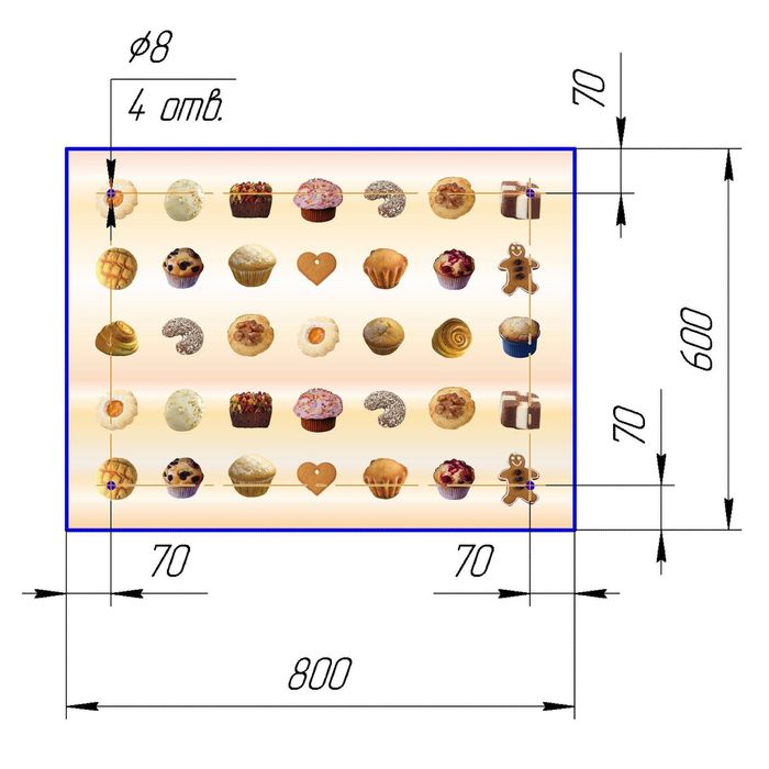 Стеклянный фартук закаленное стекло М1 "Сладости-2", 600х800х4