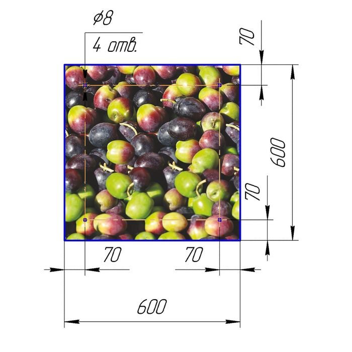 Стеклянный фартук закаленное стекло М1 "Яблоки", 600х600х4