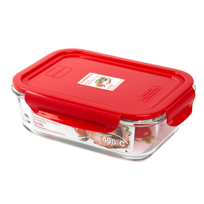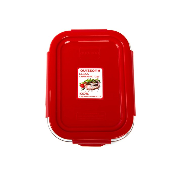 Стеклянный контейнер Oursson, 21 × 16,1 × 6,7 см, красный
