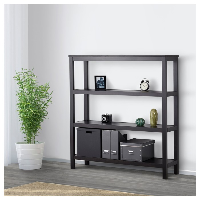 Каждому хозяину периодически приходит мысль обновить свою квартиру, сделать ремонт, перестановку или кардинально поменять внешний вид каждой комнаты. Стеллаж ХЕМНЭС, черно-коричневый, 120x130 см — привлекательная деталь, которая поможет воплотить вашу интерьерную идею, создать неповторимую атмосферу в вашем доме. Окружите себя приятными мелочами, пусть они радуют глаз и дарят гармонию.