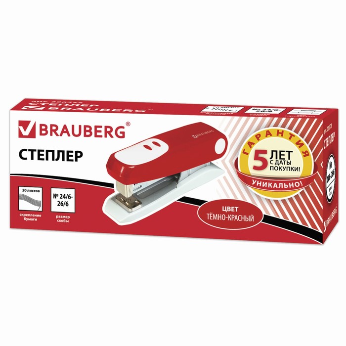 Степлер BRAUBERG Germanium №24/6-26/6 на 20л, пластиковый корпус, т-красный 226579 поможет организовать ваше рабочее пространство и время. Востребованные предметы в удобной упаковке будут всегда под рукой в нужный момент.