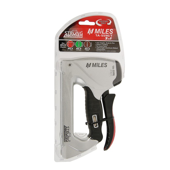 Степлер мебельный Miles, 6-14 мм, тип 41, 47, 53, алюминиевый корпус, 3 в 1