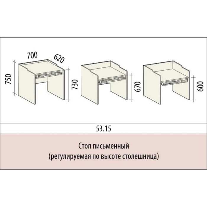 Изделие оснащено выдвижным ящиком. Храните там бумаги, тетради и прочие канцелярские принадлежности. Фрезеровка служит декором фасада и придаёт ему выразительности и оригинальности. Регулируемые по высоте ножки решат проблему неровности пола и позволят правильно выставить стол.