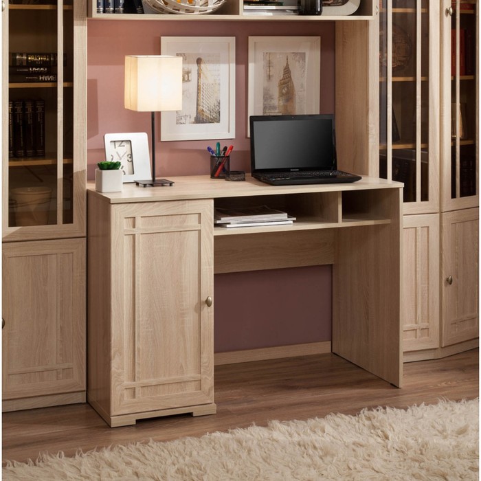 В боковой тумбе есть 2 полки, которые регулируются по высоте. Если не устанавливать их, то освободившееся место можно использовать как подставку для системного блока. Задняя стенка изготовлена из ХДФ.