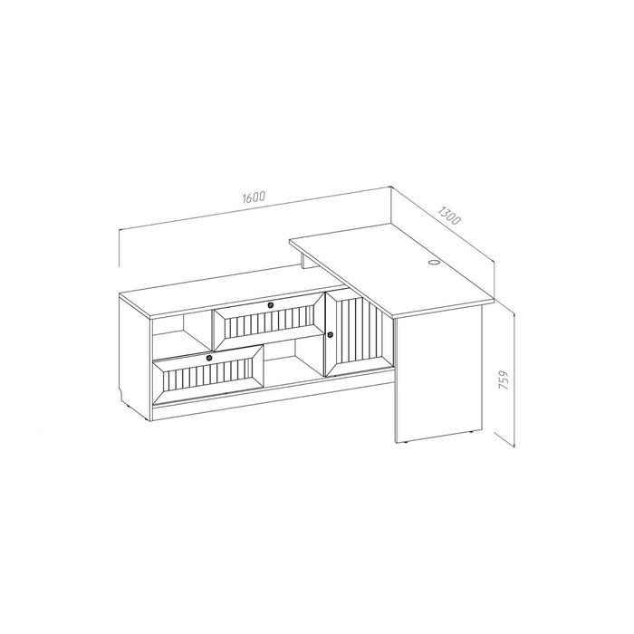 Изделие имеет ящики и ниши для важных мелочей и алюминиевую заглушку для проводов. Обратите внимание на ориентацию стола, указанную в наименовании.