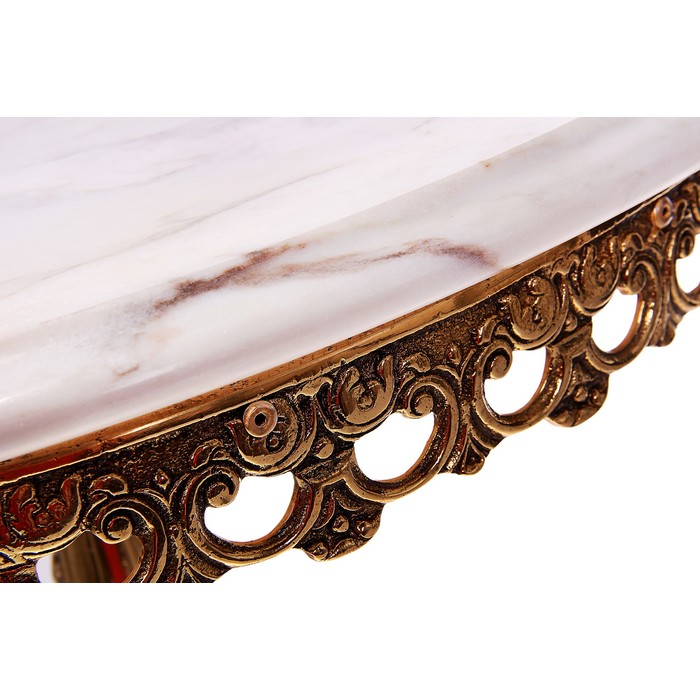 Сложно не оценить красоту этого уникального столика ручной работы, созданного на известной далеко за пределами Европы испанской фабрике Virtus. Идеально гладкая мраморная столешница и элегантная бронзовая ножка-подставка прекрасно сочетаются друг с другом и создают единый гармоничный ансамбль. Как прекрасно будет смотреться на этом столике изящная ваза с букетом цветов или оригинальной статуэткой! Придайте своему интерьеру звучную ноту подлинно аристократического шика вместе с таким замечательным предметом мебели.