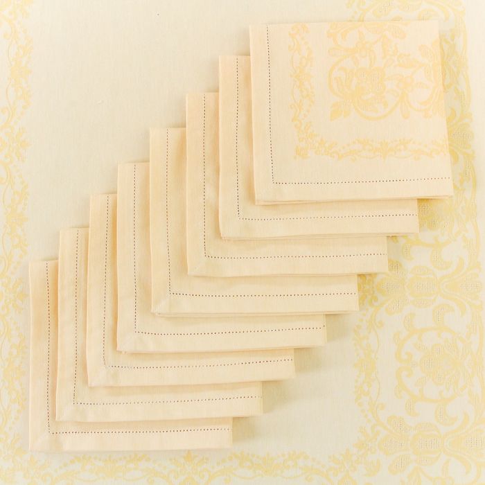 Столовый набор "Этель" (скатерть 150х150 см, салфетки 45х45 см - 4 шт.) цвет шампань, хл. с ВМГО