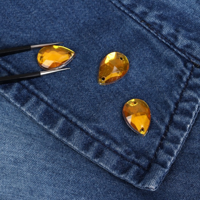 Стразы пришивные, 10*14мм, 20шт, в форме капли, цвет жёлтый