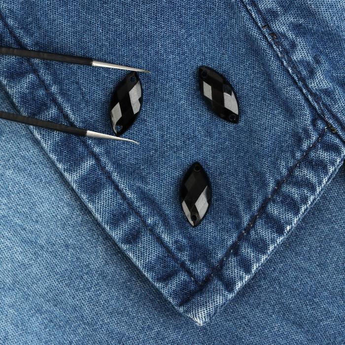 Стразы пришивные, 7*15мм, 50шт, в форме лепестка, цвет чёрный