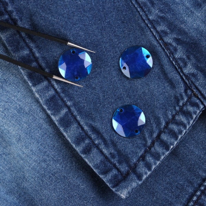 Стразы пришивные, d=14мм, 20шт, круглые, цвет синий