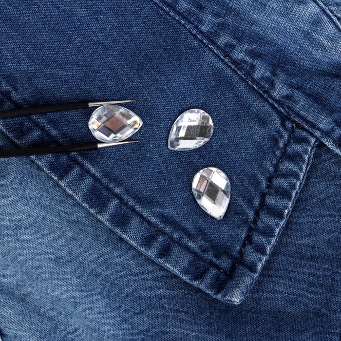 Стразы термоклеевые "Капля", 10 х 14мм, 20шт, цвет белый