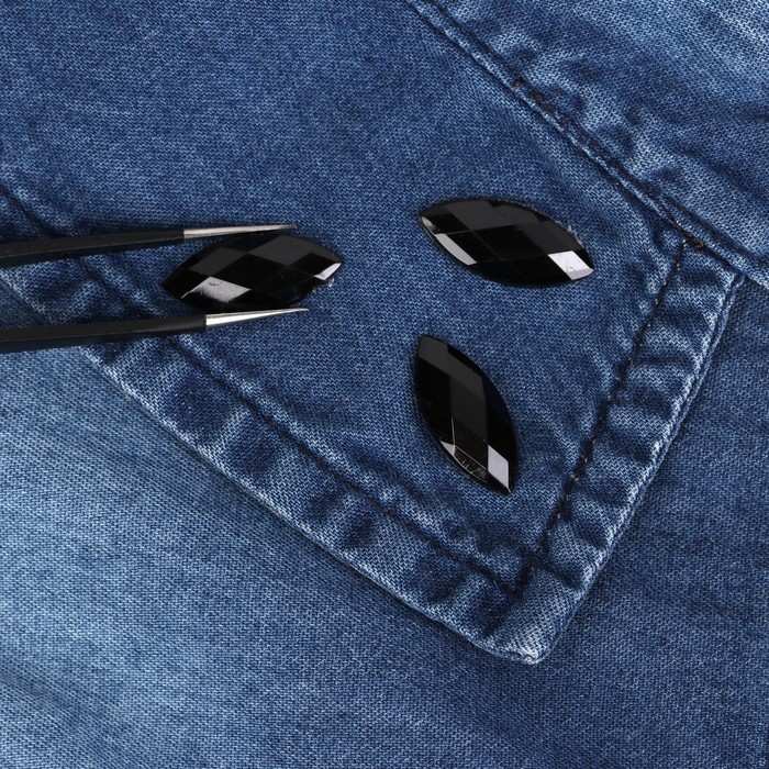 Стразы термоклеевые "Лепесток", 20шт, 9 х 20мм, цвет чёрный