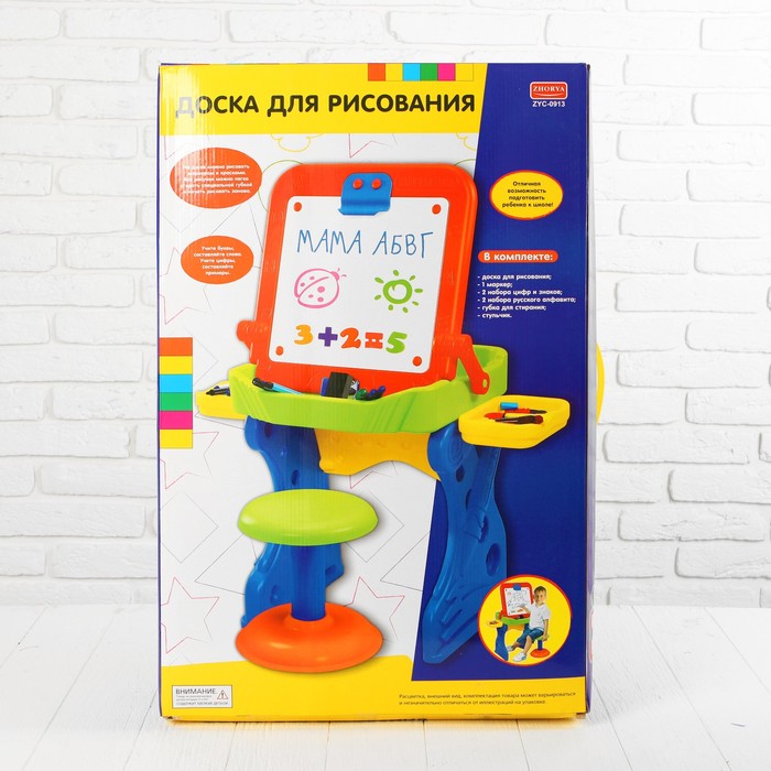 Студия для рисования, в наборе стульчик, губка, маркер, набор цифр и знаков