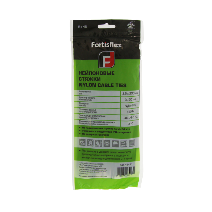Стяжки нейлоновые Fortisflex КСС,4x200 мм, черные, набор 100 шт.