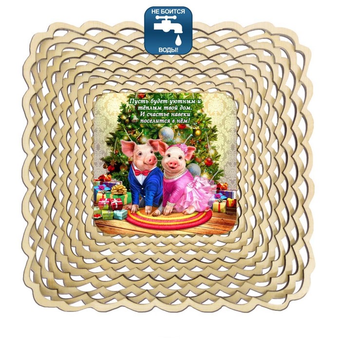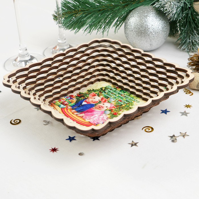 Сухарница «Хрюши под ёлкой», 17,5×17,5×4 см