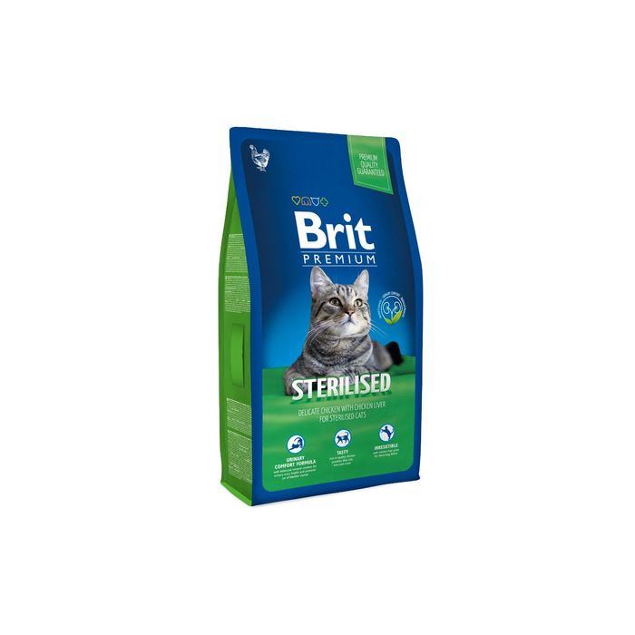 Сухой корм Brit Premium Сat Sterilised для стерилизованных кошек, курица+печень, 8 кг — это полнорационное сбалансированное питание, разработанное с учётом возраста, массы тела, физических нагрузок и породных особенностей животного.