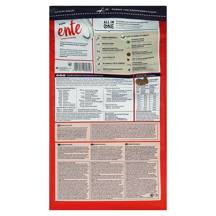 Сухой корм Happy Cat Sensitive для кошек, утка, 1.4 кг — это полнорационное сбалансированное питание, разработанное с учётом возраста, массы тела, физических нагрузок и породных особенностей животного.