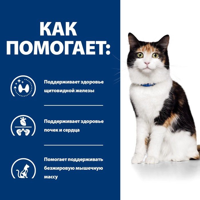 Сухой корм Hill's Cat y/d для кошек, при заболеваниях щитовидной железы, 1.5 кг — это полнорационное сбалансированное питание, разработанное с учётом возраста, массы тела, физических нагрузок и породных особенностей животного.