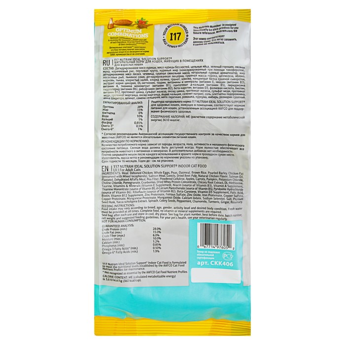 Сухой корм Nutram I17 indoor для привередливых домашних кошек, курица/лосось, 400 г — это полнорационное сбалансированное питание, разработанное с учётом возраста, массы тела, физических нагрузок и породных особенностей животного.