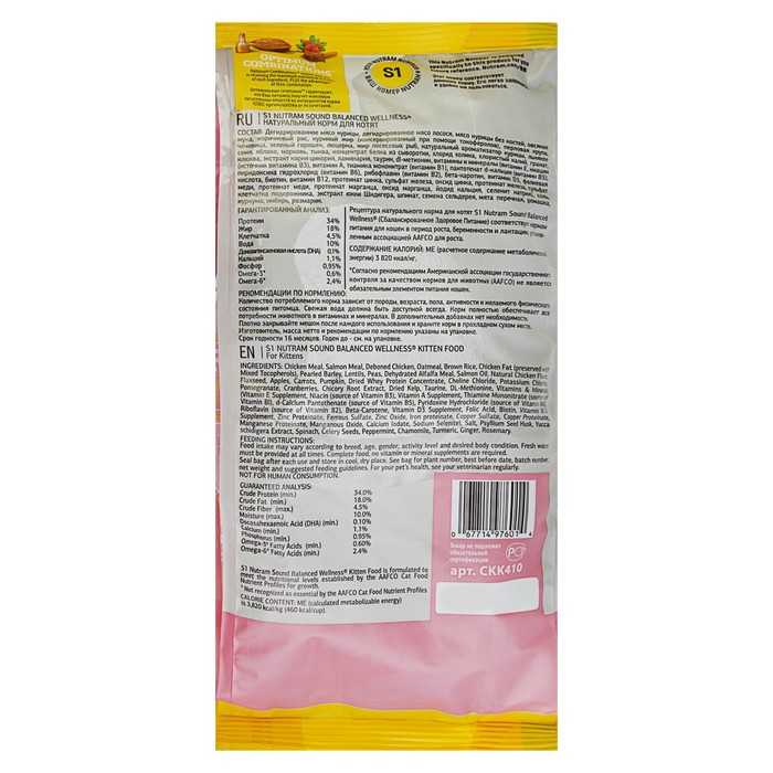 Сухой корм Nutram S1 kitten для котят, курица/лосось, 400 г — это полнорационное сбалансированное питание, разработанное с учётом возраста, массы тела, физических нагрузок и породных особенностей животного.