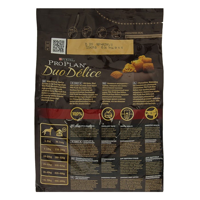 Сухой корм PRO PLAN DUO DELICE для собак, лосось/рис, 2.5 кг — это полнорационное сбалансированное питание, разработанное с учётом возраста, массы тела, физических нагрузок и породных особенностей животного.