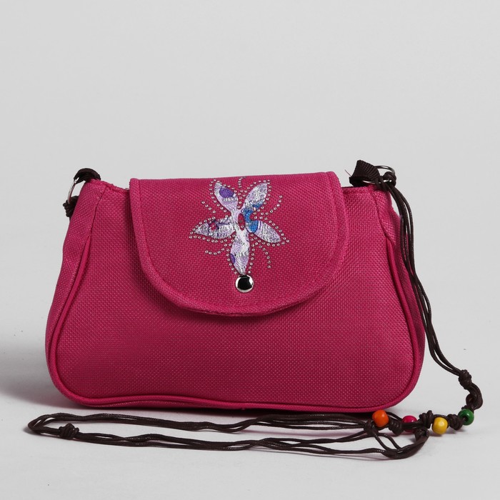 Сумка детская на магните "Цветок", 1 отдел, длинный ремень, цвет малиновый
