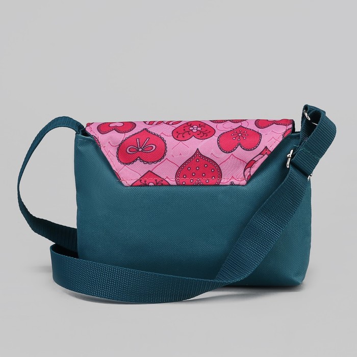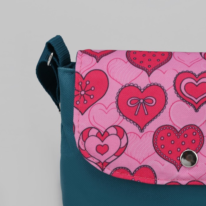 Сумка детская "Сердца", отдел на клапане, длинный ремень, цвет морской/розовый