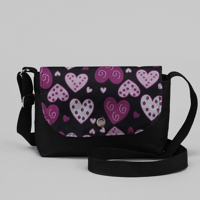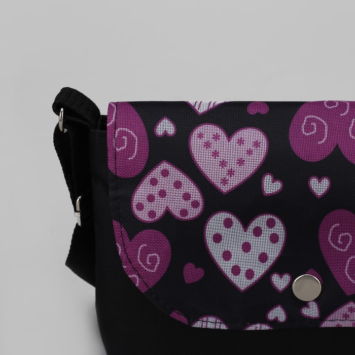 Сумка детская "Сердечки", отдел на клапане, длинный ремень, цвет чёрный