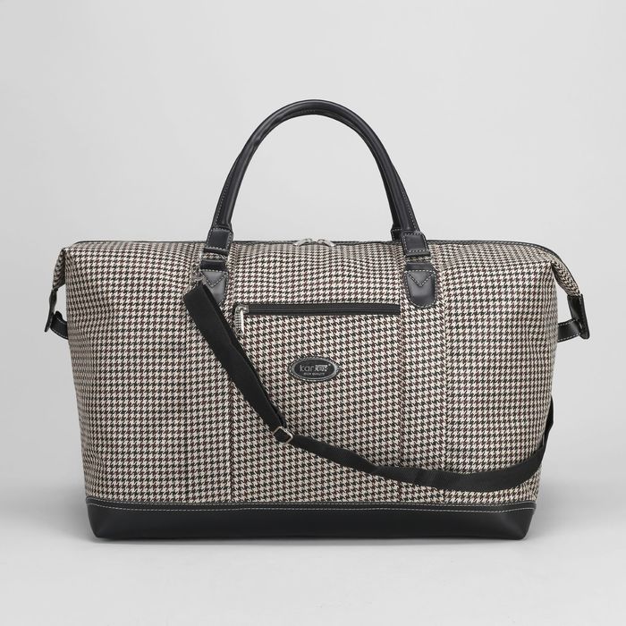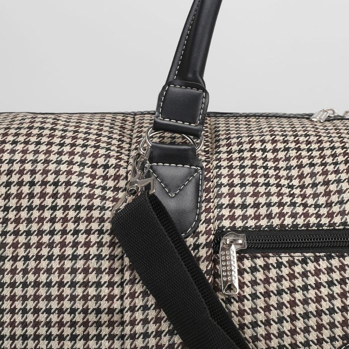Сумка дорожная, 1 отдел на молнии, 2 наружных кармана, длинный ремень, принт гусиная лапка