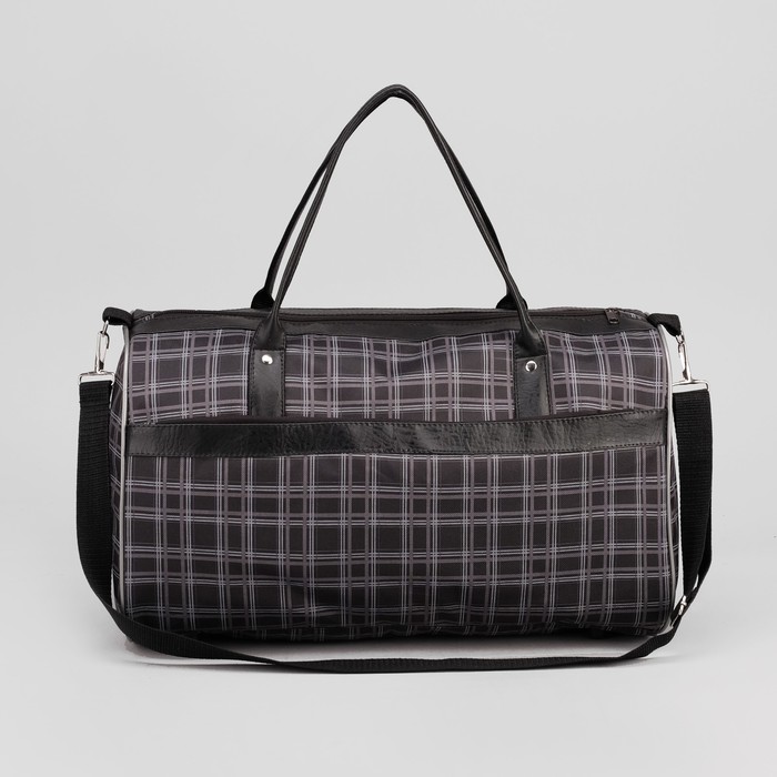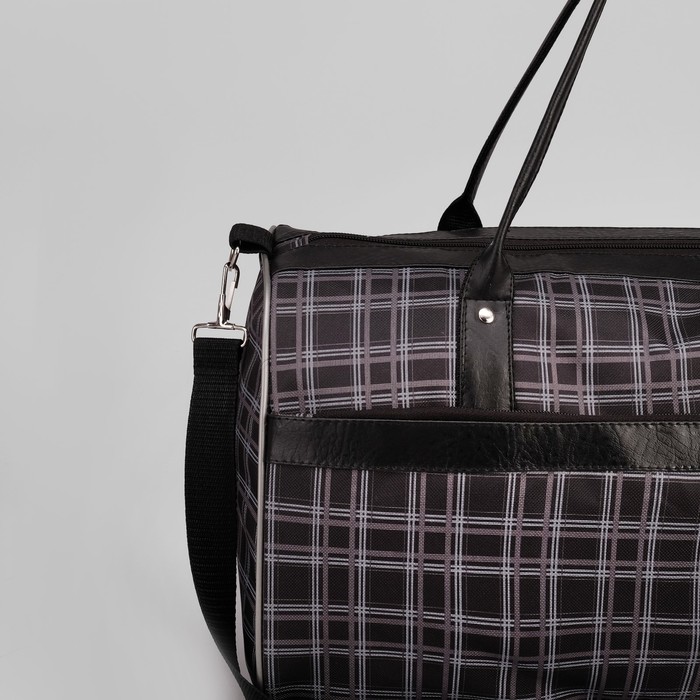 Сумка дорожная "Клетка", отдел на молнии, наружный карман, длинный ремень, цвет чёрный
