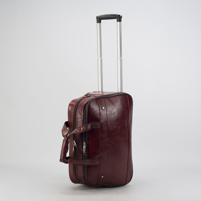 Сумка дорожная малая на колёсах, 2 отдела на молниях, цвет коричневый