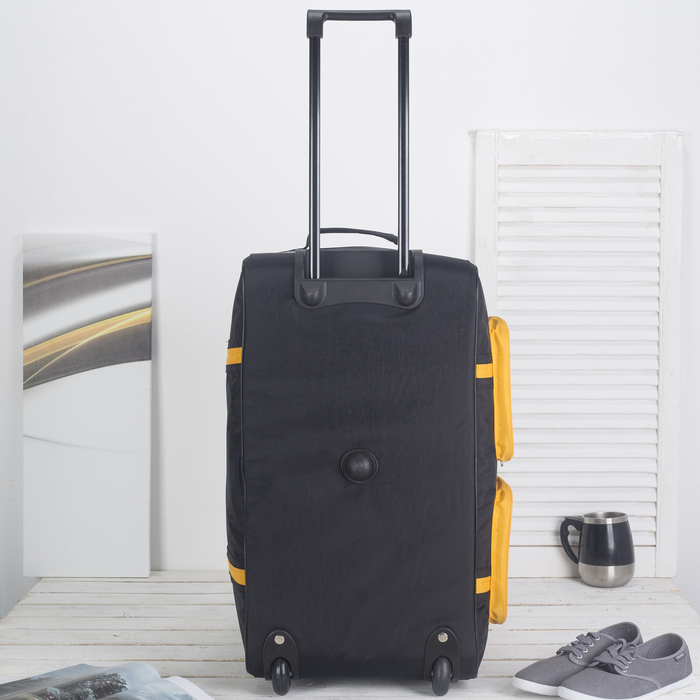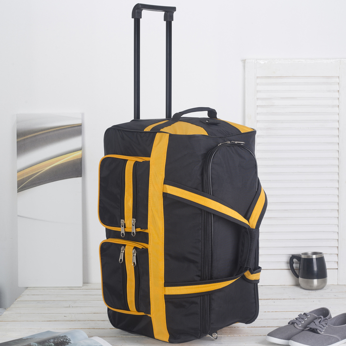 Сумка дорожная, на колёсах, 1 отдел, 4 наружных кармана, длинный ремень, цвет чёрный/жёлтый