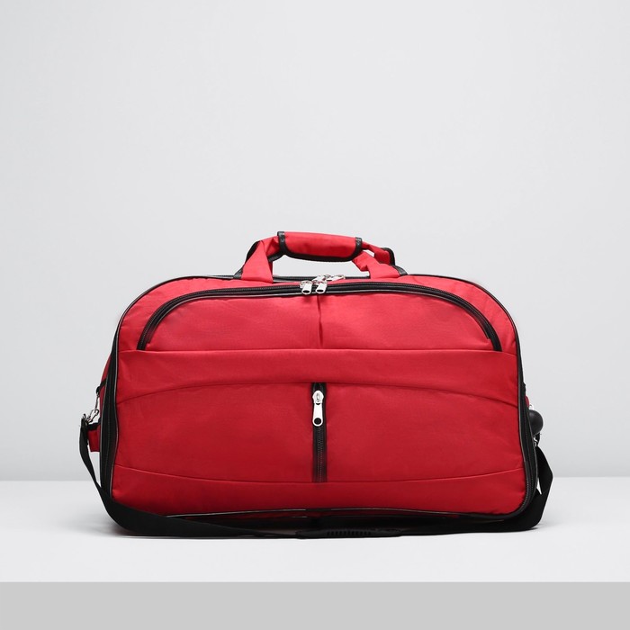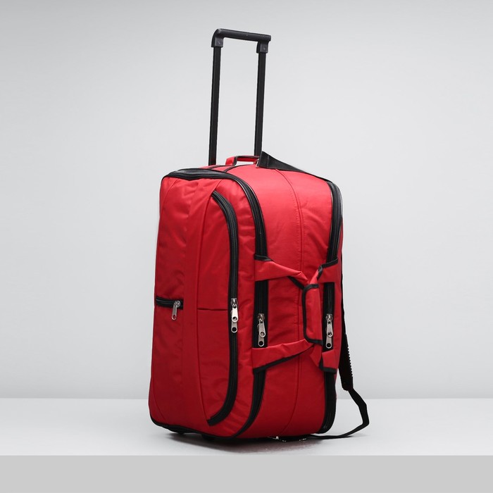 Сумка дорожная, на колёсах, 2 отдела, 4 наружных кармана, длинный ремень, цвет красный/чёрный