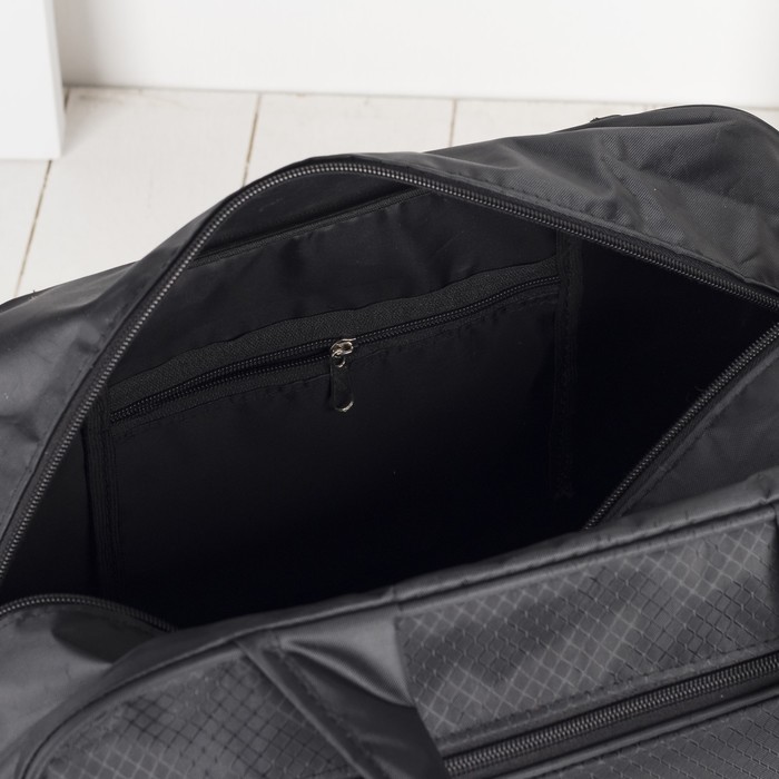 Сумка дорожная на молнии, 1 отдел, 3 наружных кармана, длинный ремень, чёрная
