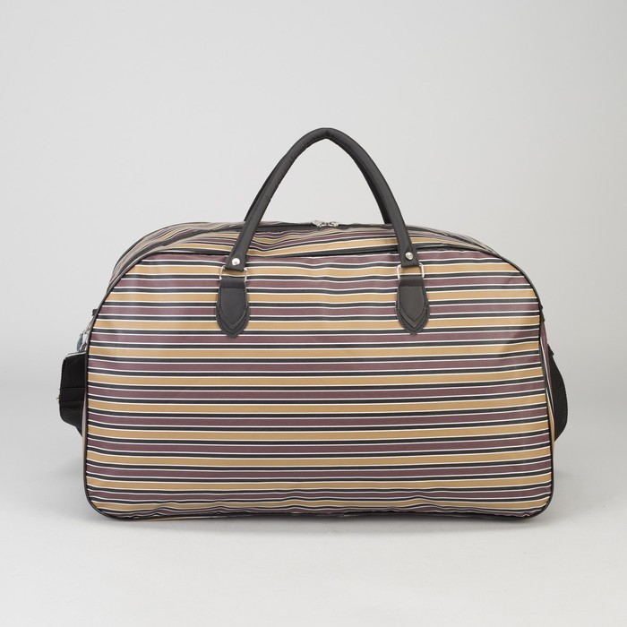 Сумка дорожная «Полосы», отдел на молнии, наружный карман, длинный ремень, цвет коричневый