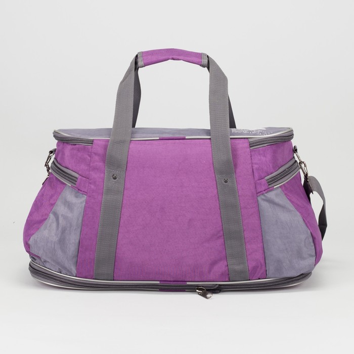 Сумка дорожная, с расширением, отдел на молнии, 4 наружных кармана, регулируемый ремень, цвет сиреневый/серый
