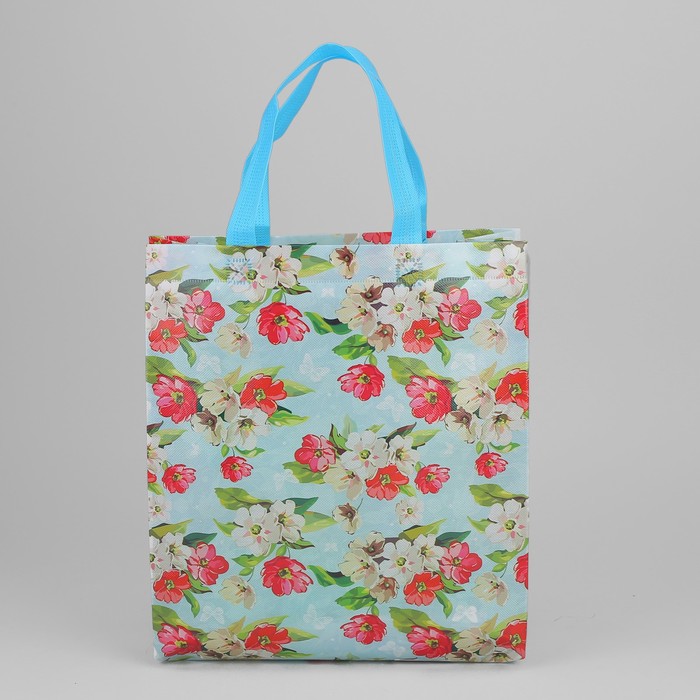 Сумка хозяйственная «Цветы», отдел без молнии, цвет голубой