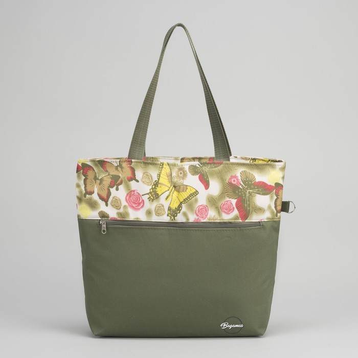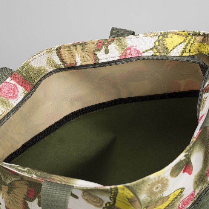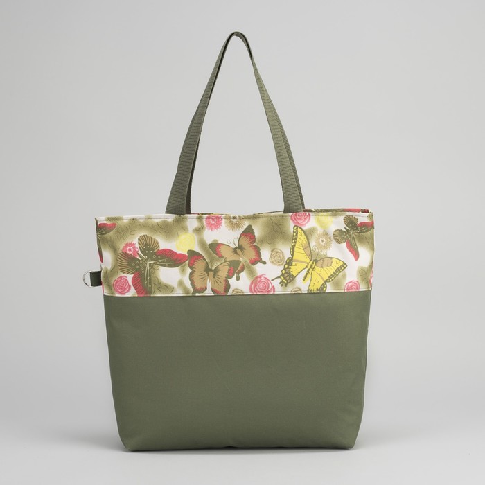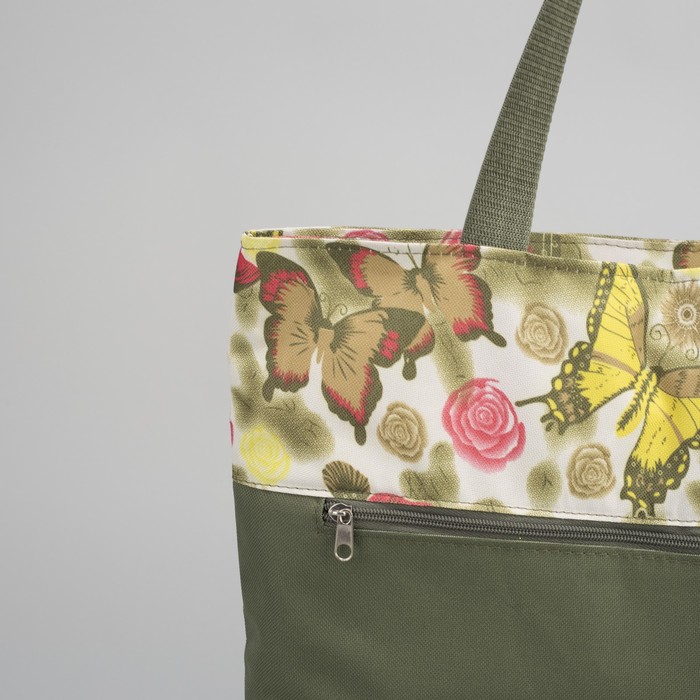 Сумка летняя "Бабочки", 1 отдел на молнии, наружный карман, цвет хаки
