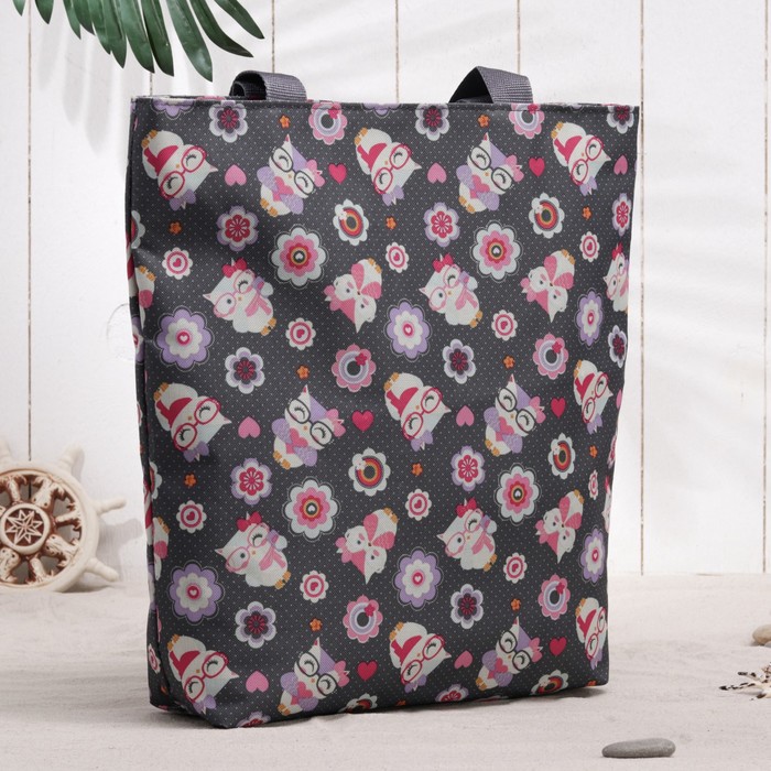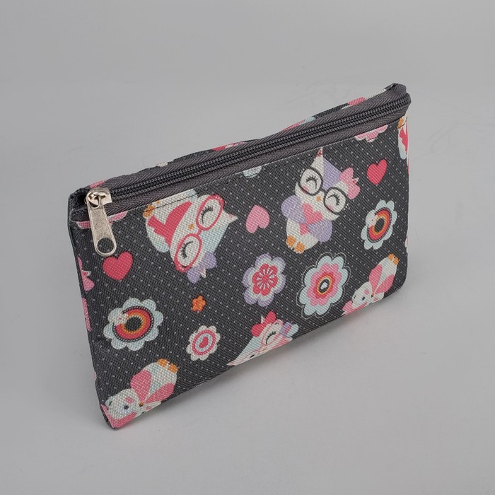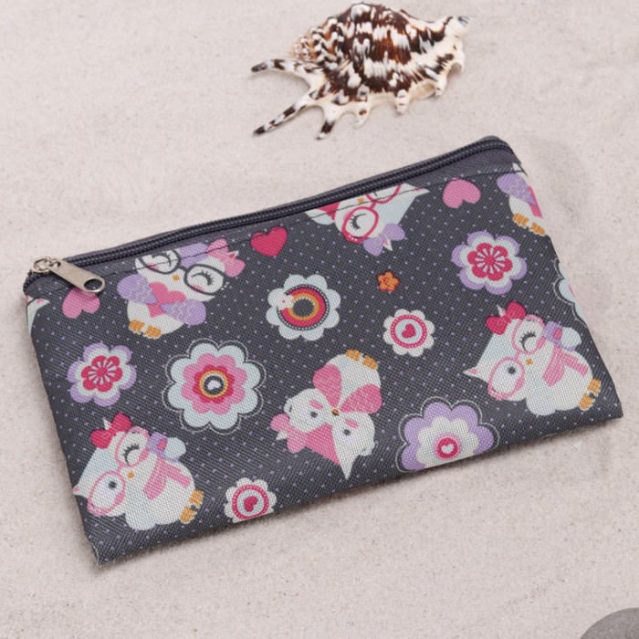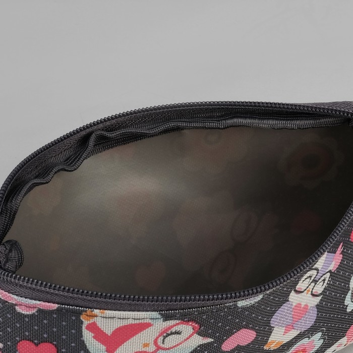 Сумка летняя с косметичкой "Совы в очках", отдел на молнии, цвет серый