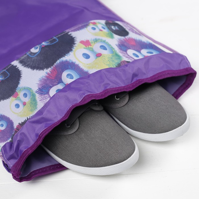 Сумка-мешок для обуви "Ёжики", цвет сиреневый поможет организовать ваше рабочее пространство и время. Востребованные предметы в удобной упаковке будут всегда под рукой в нужный момент.