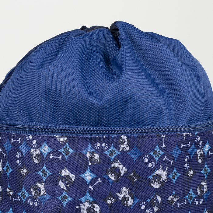 Сумка-мешок для обуви «Мопсы», наружный карман на молнии, цвет синий